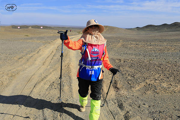 我們佛山隊一路結伴前行,第一天睿牛制衣總經理——歐陽月華(簡稱華姐)走在隊伍的最后,葉老師的對講機總是那句“報告隊長,我和華姐走在最后,我看著她”,然后說“華姐走快一點”!是壓力更是動力!看看照片第二天的華姐走在前面了(沖鋒衣姐的裝備很容易認,熒光綠的防沙套和熒光橙的衣服,睿牛自己專業定制的!)。那一刻你才真正體會到什么才是真正的團隊,隊長說“一個都不漏下,我們攙扶著也要走完,絕對不上車!”十一戈是個胖子,走得最累的是他了。