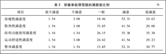 接下來作者從“保暖性滿意度”、“散熱性滿意度”、“結構功能使用滿意度”、“運動舒適性滿意度”、“整體滿意度”五個方面對消費者滿意度進行了調查。情況如下: