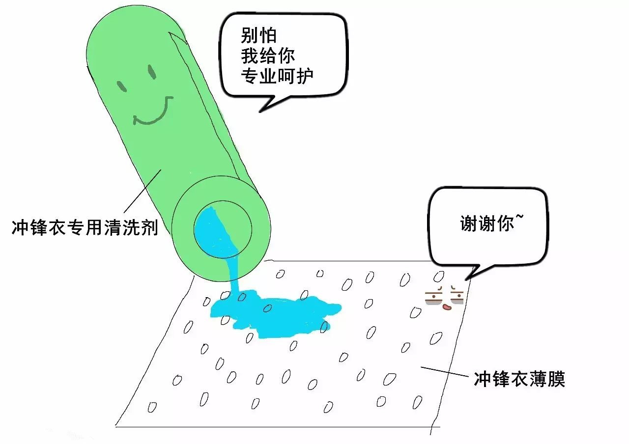 使用專(zhuān)業(yè)的清洗劑后,沖鋒衣可以去除堵塞薄膜的污垢。