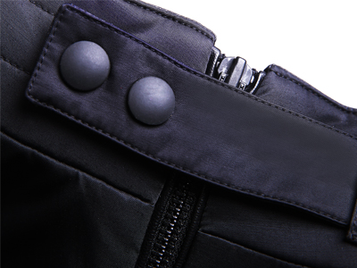 領口設計:領口處拉鏈外加四合扣,更好地防止冷風入侵,也能保持領口的線條感。