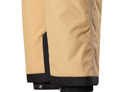 褲腰設(shè)計:戶外滑雪褲加工的背帶與褲子鏈接處采用調(diào)節(jié)扣鏈接,帶子末端魔術(shù)貼加固,安全放心。